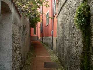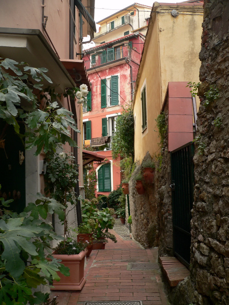 The downtown in Lerici has very narrow streets and stairs connecting the colorful homes.
