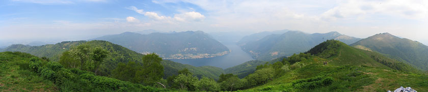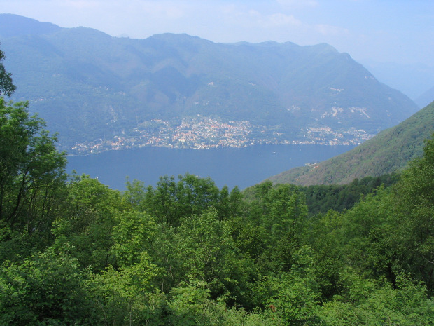 Il bellissimo panorama sul lago di Como, visibile dai numerosi sentieri percorribili a piedi, nei pressi di Brunate.