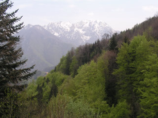 A nice panorama into Brembana valley and the Brembo river, visible from the trail going to Camerata Cornello.